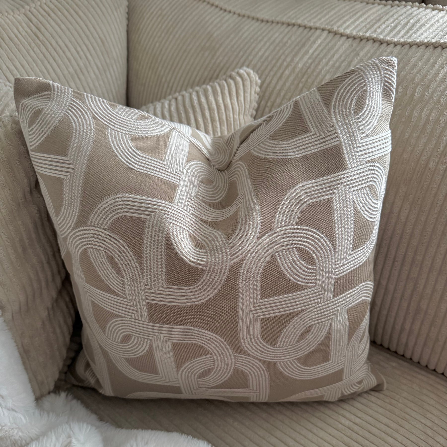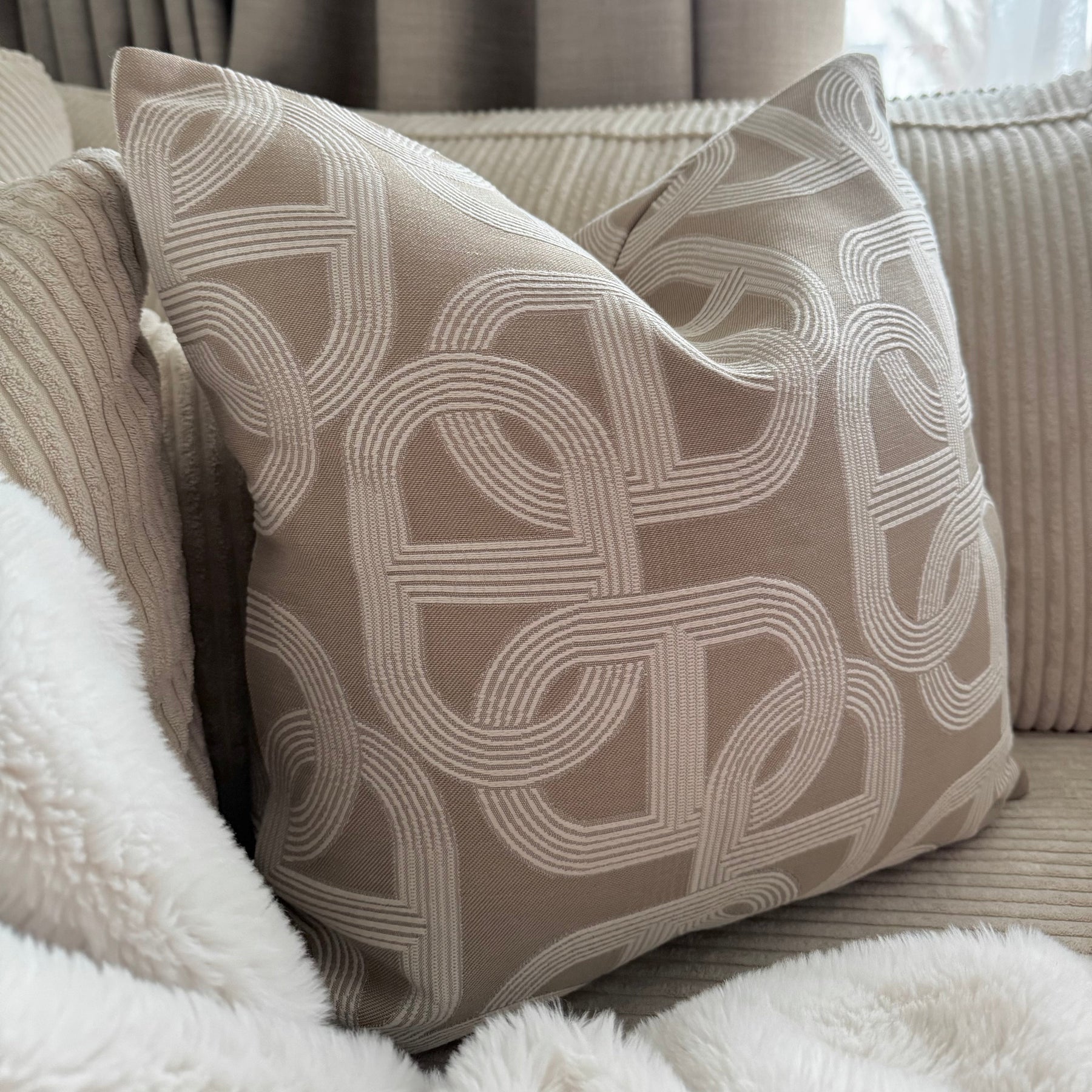 Enrich your interior with this luxury cushion cover (45x45 cm) designed to add a touch of refinement and warmth to any space. The unique geometric pattern in soft beige and cream tones exudes tranquility and class, while the subtle texture creates a playful yet elegant effect. This cover is perfect for those looking for a stylish accent with a timeless appeal.