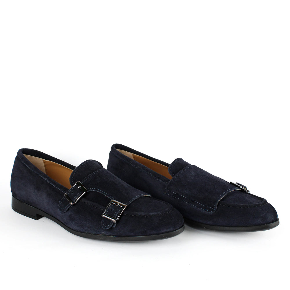 Double Buckle Suede Moccasins in Blue