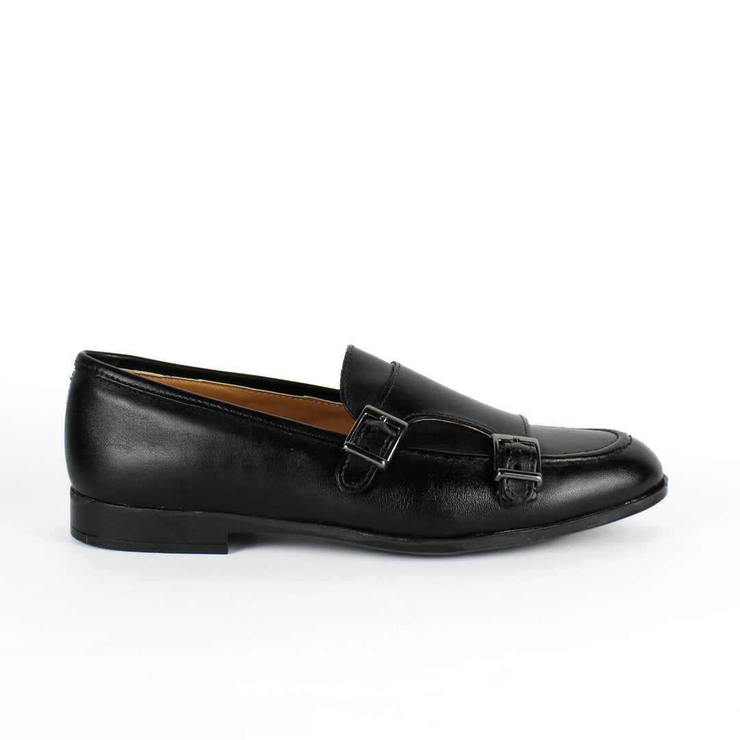 Double Buckle Black Leather Moccasins