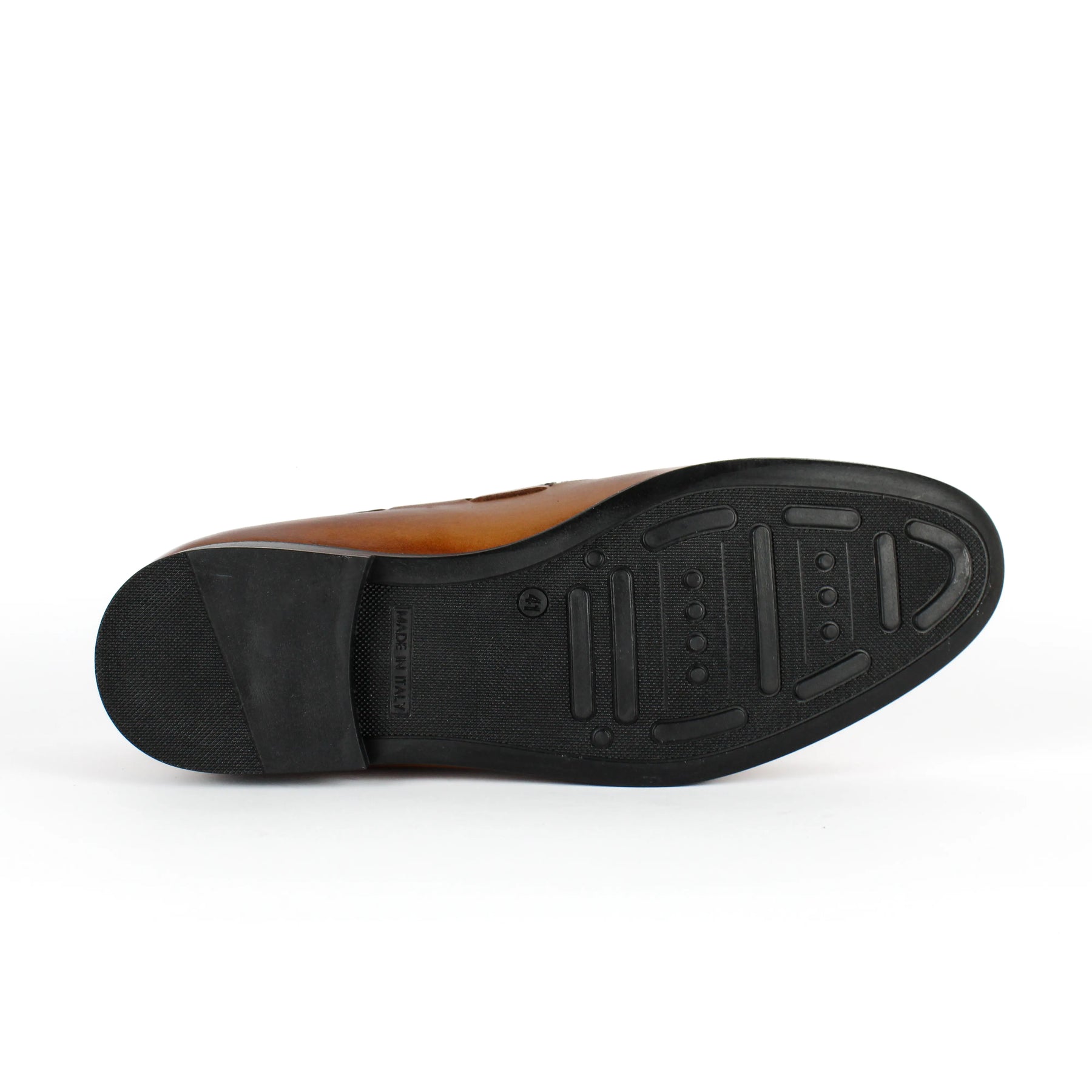 Mocassino con Nappine in Vera Pelle Cuoio con fondo in gomma ultraleggera, un perfetto equilibrio tra artigianato italiano di alta qualità e design contemporaneo.